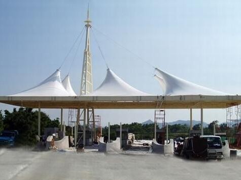 交通膜結(jié)構(gòu)打破了純直線建筑風(fēng)格的模式,以其具有的優(yōu)美曲面造型,簡潔、明快、剛與柔、力與美的組合,呈現(xiàn)給人以耳目一新的感覺,同時給建筑設(shè)計師提供了更大的想象和創(chuàng)造空間。