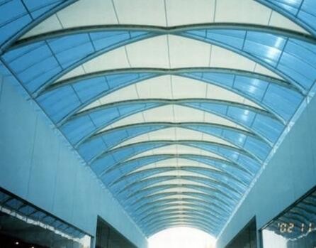 室內(nèi)膜結(jié)構(gòu)與室外膜結(jié)構(gòu)相比,其設(shè)計及安裝所考慮的主要問題基本類似,要審慎對待、合理設(shè)計,充分考慮現(xiàn)場環(huán)境和施工條件,選擇合適的節(jié)點構(gòu)造形式,保證建筑的合理性及視覺效果。